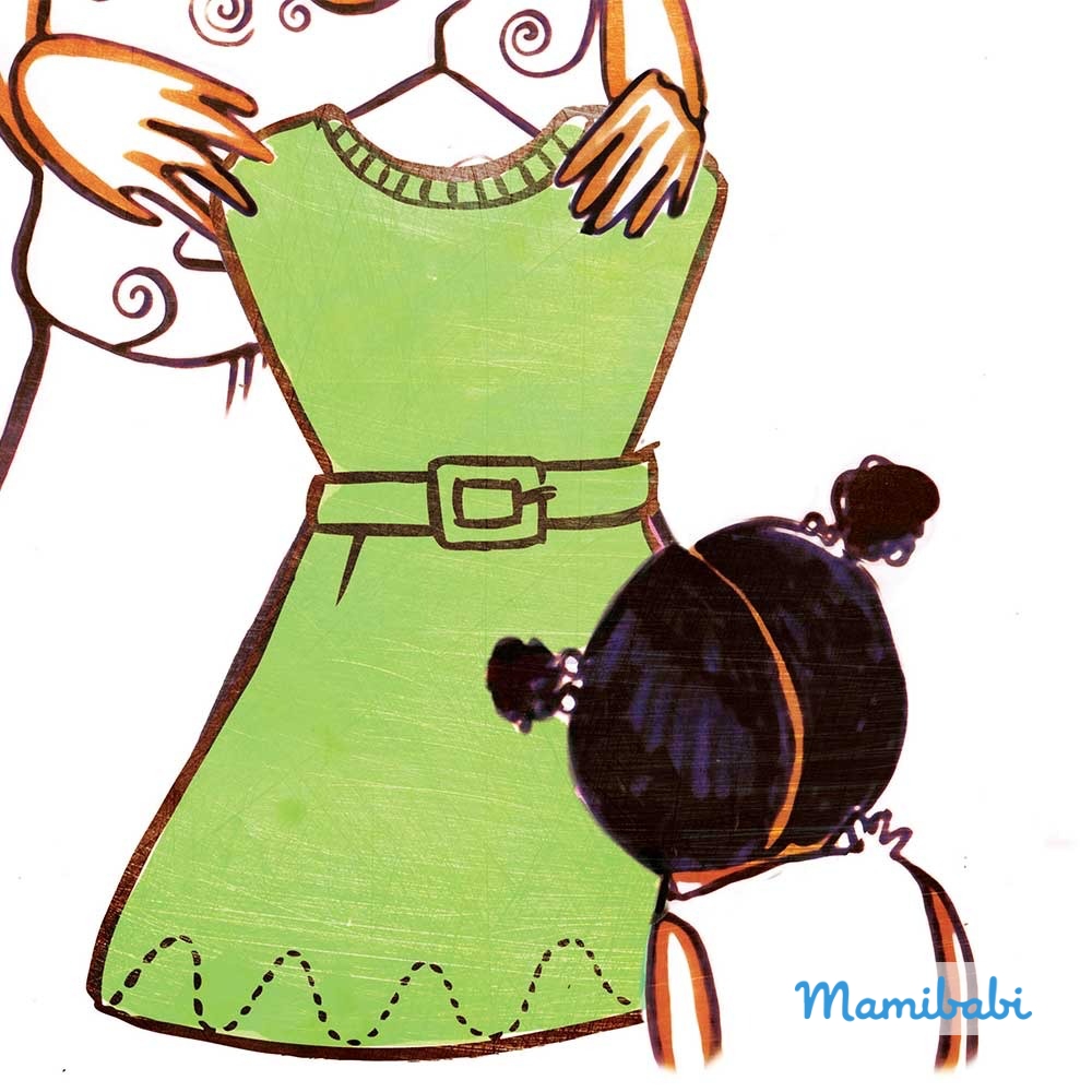 “Mẹ tìm giúp con một chiếc váy màu xanh lá cây được không mẹ?”