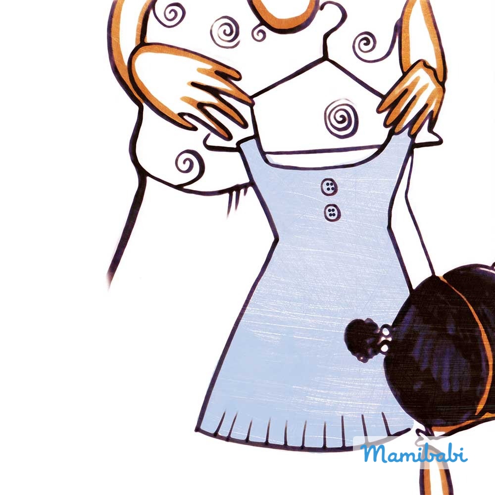 Thế là mẹ tìm cho bạn ấy một chiếc váy màu xanh da trời rất đáng yêu.