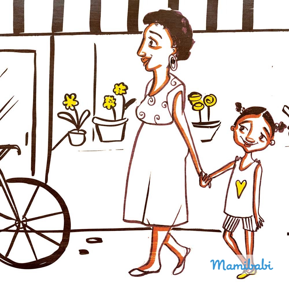 Mina cùng mẹ đến cửa hàng để mua một chiếc váy thật xinh đẹp.