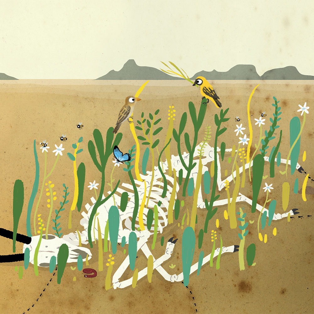 Một tuần sau đó, hai mẹ con Kền Kền quay lại chỗ của bác Linh Dương. Ở nơi bác ấy ngã xuống đã xuất hiện những bụi cây li ti.