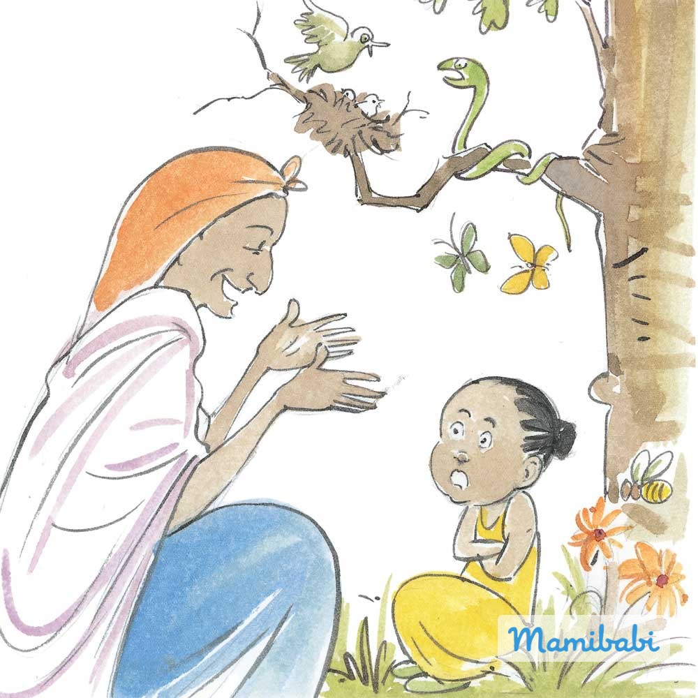 Ăn xong, Thuli cùng bà ngồi dưới gốc cây và nghe bà kể chuyện.