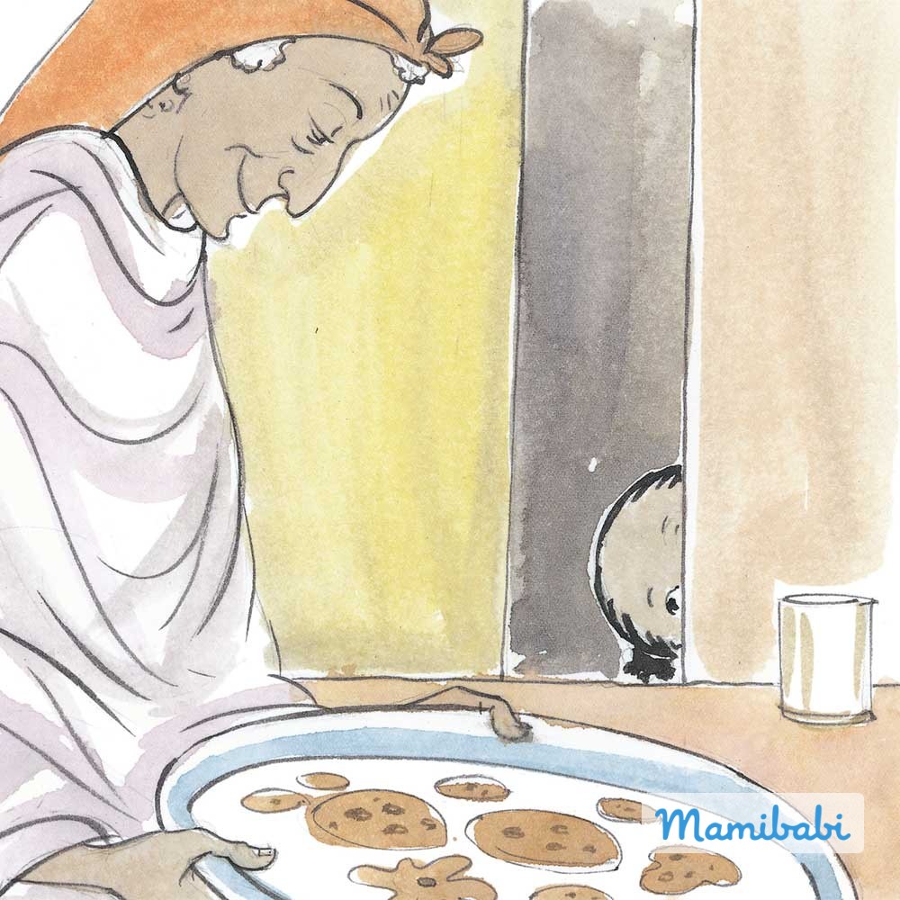 Sau giờ kể chuyện, bà cho Thuli ăn bánh quy và uống sữa bò thơm ngon, béo ngậy.